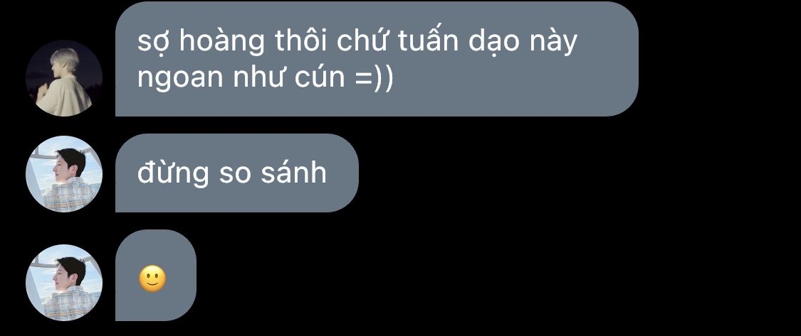 Hoàng nghe vậy chỉ muốn phun nước vào mặt người đối diện để anh ngậm miệng lại, Tiến Mạnh cũng nhận ra là cậu đang lườm bèn thức thời mà im lặng. Tiếng kim đồng hồ chạy vang lên rõ mồn một giữa đêm vắng, Mạnh đảo mắt nhìn cậu.