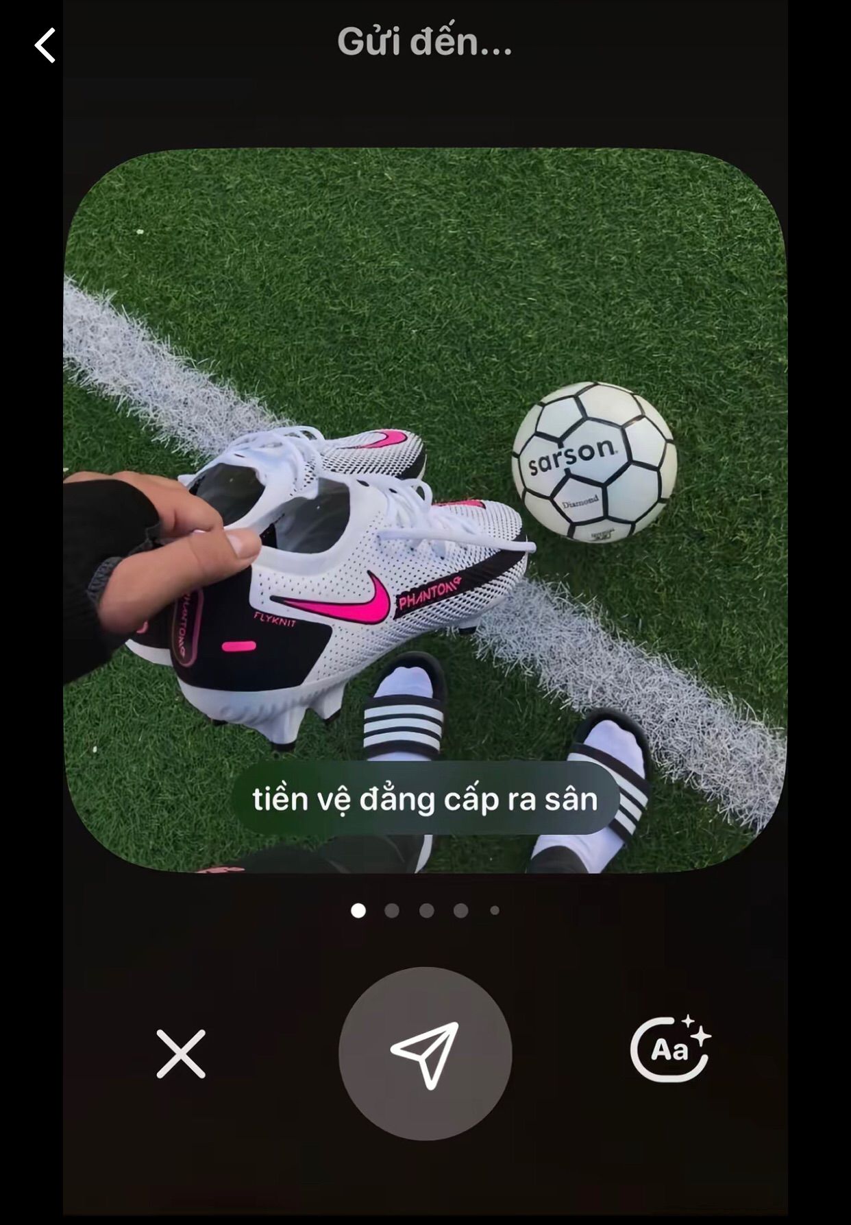 "được rồi đừng nắm tay tớ nữa, tớ sẽ đến coi cậu đá mà."