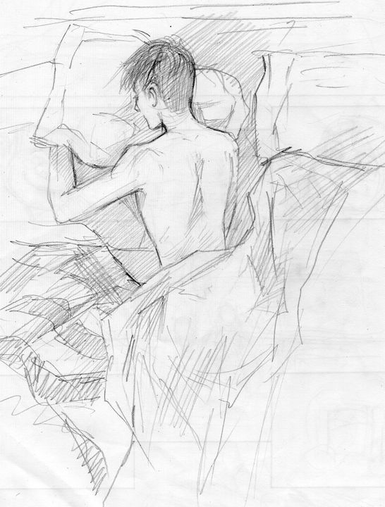Má lõm cựa quậy, đầu anh quay về phía cửa số, quay lưng lại phía tôi. Tôi đưa tay kéo tấm chăn lên ngang lưng cho anh, được một lúc lại bị anh đạp xuống.