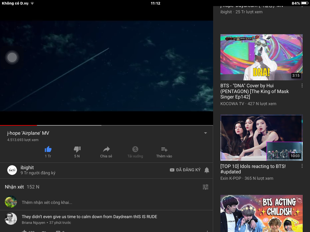 - Các nàng ơi MV DNA được 300tr việc rồi~ Tiểu Hy Vọng cũng ra MV mới : Airplane.