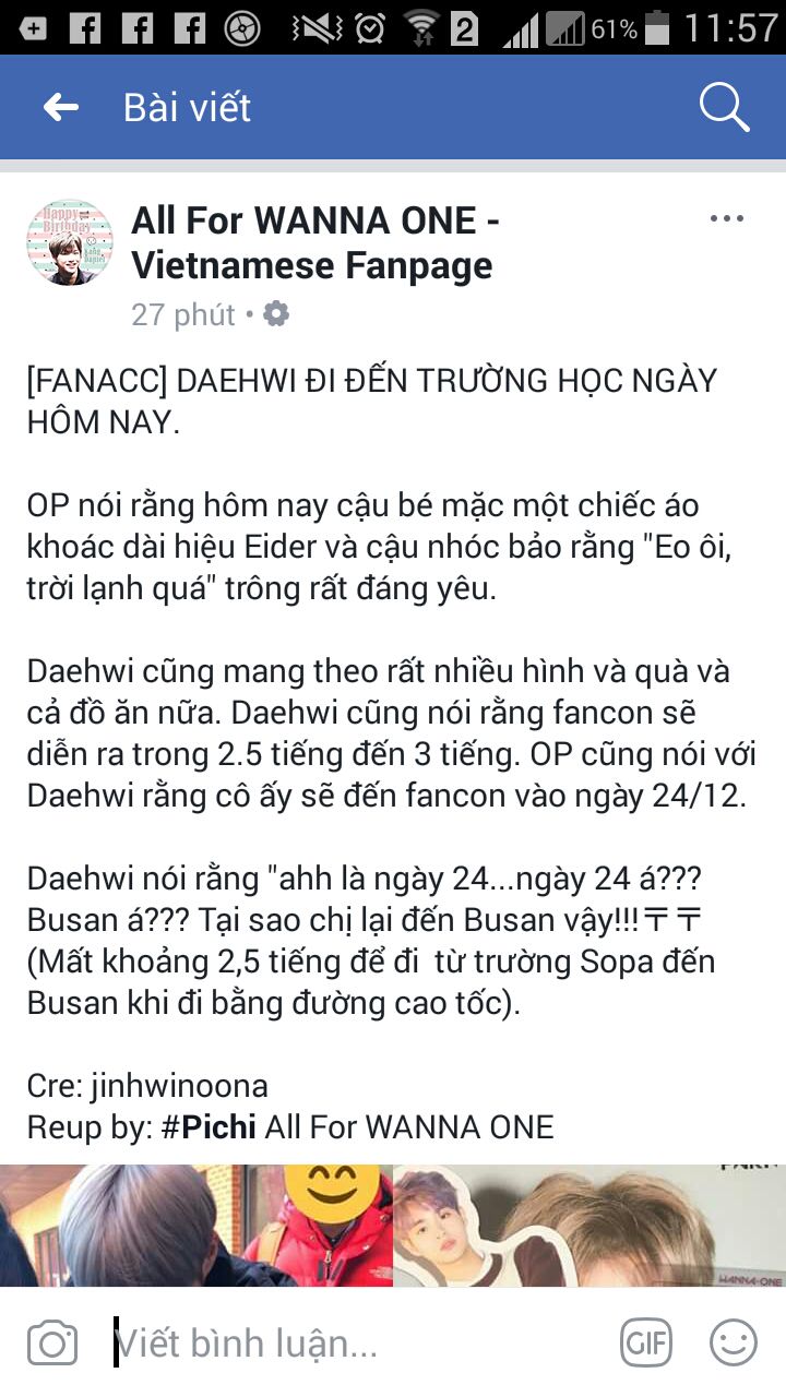 Daehwi nghe thế liền trả lời "AhㅋㅋㅋㅋㅋㅋㅋMấy bạn phải xem Wanna One Go qua điện thoại rùiㅋㅋㅋㅋ" Daehwi cũng hỏi là sao hổng đi xem fancon ở Busan nữa, thế là bạn OP bảo là họ đi fancon vào ngày 24 nữa đó.