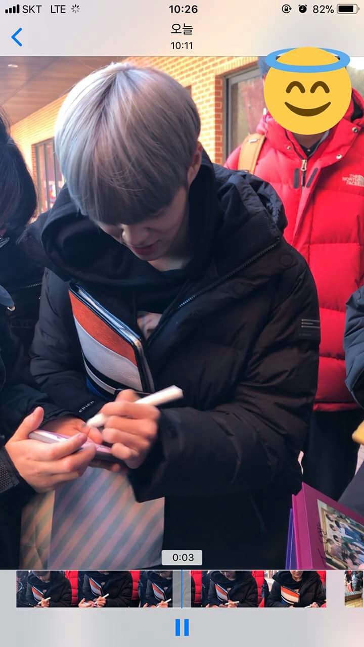 Hôm nay Daehwi đã tới trường SOPA, cậu ấy mặc Eider Padding và đã nói với mọi người một cách dễ thương là "Ui trời lạnh ý". Cậu ấy chăm chỉ ký tên cho mọi người trong khi tay thì cầm bảng vẽ, quà, đồ ăn... mà mọi người tặng cậu ấy.