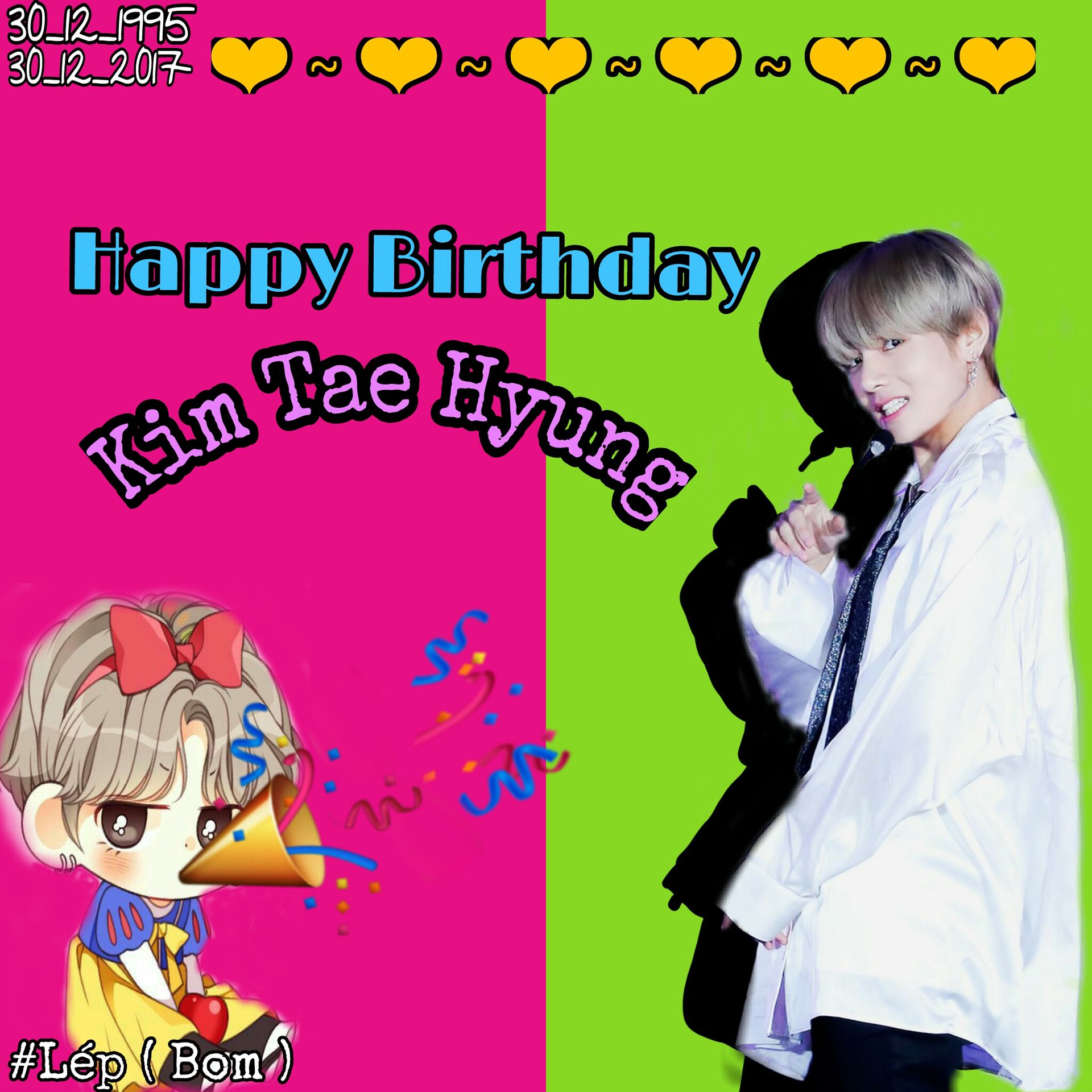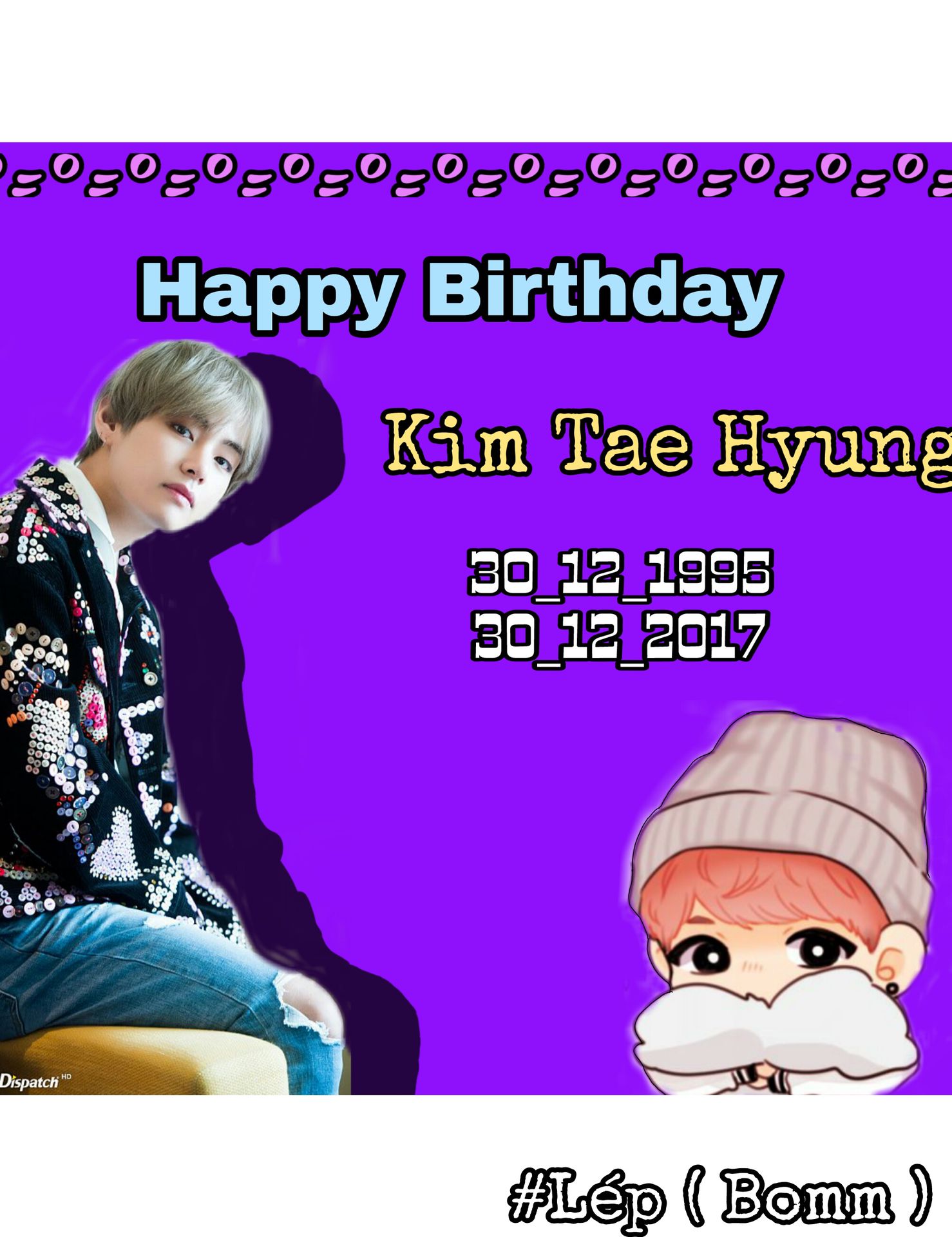 - Hôm nay là ngày vô cùng quan trọng đối với ARMY's của chúng ta nhỉ ?? Ngày 30/12 là cái ngày mà hàng vạn ARMY's làm cháy máy sập acc tao ~~ lướt đầu cũng toàn thấy HappyVDay 💋🎉 Qua 10h là Taehyung lại thêm 1 tuổi rồi 🍁 Anh được sinh ra để làm Nam Thần. Làm Thanh Xuân của ARMY's. 🍁💋 Nhờ Anh mà Thanh Xuân của Em thêm phần nào đó nhộn nhịp : ) 💋🍁Kim Tae Hyung chàng trai cung Ma Kết Anh chiếm gọn cả trái tim của ARMY's bằng những Aegyo 💥🐹 Cưng chiều Fan >< Nụ cười rạng rỡ làm đốn tim biết bao nhiêu Fan🍀🎉 Quan tâm các thành viên trong nhóm đặc biệt là Jung Kook ~~ 🎉😂