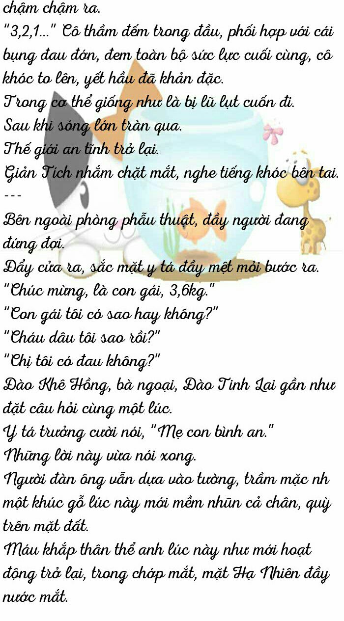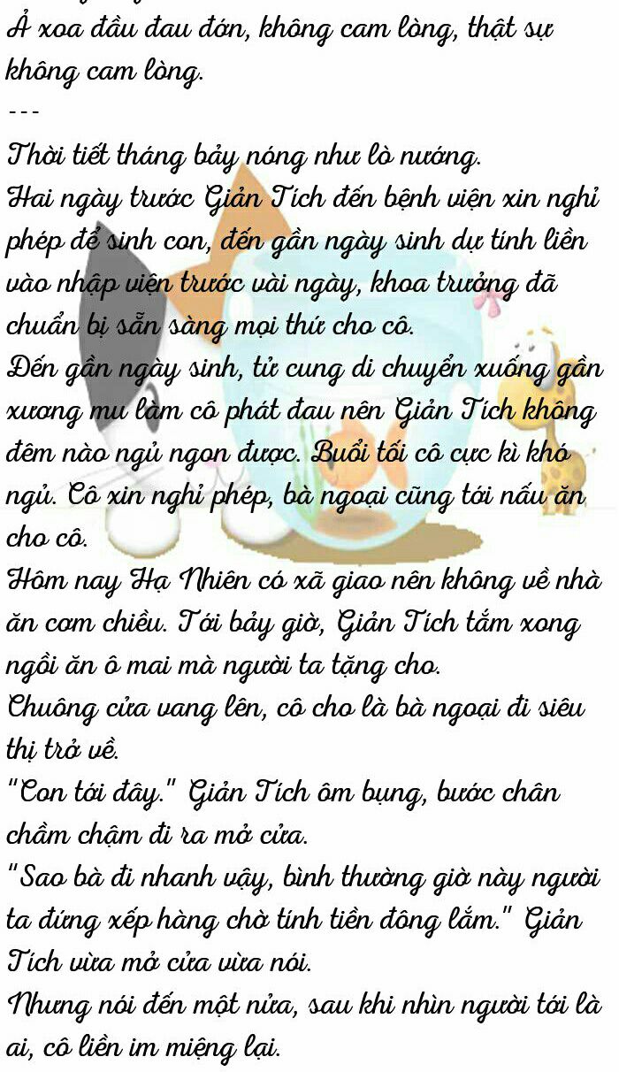 Ngửi được mùi thịt, Giản Tích không chịu nổi nữa. Trong bụng nhóc con đá liên tục năm sáu cái, Giản Tích cúi đầu cười, " Con cũng thèm rồi đúng không? Mẹ ăn trước rồi con sẽ được ăn."