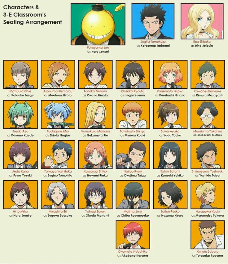 Vị trí chỗ ngồi và người lòng tiếng cho các nhân vật trong assassination classroom * chưa có Ritsu và Itona nhe*