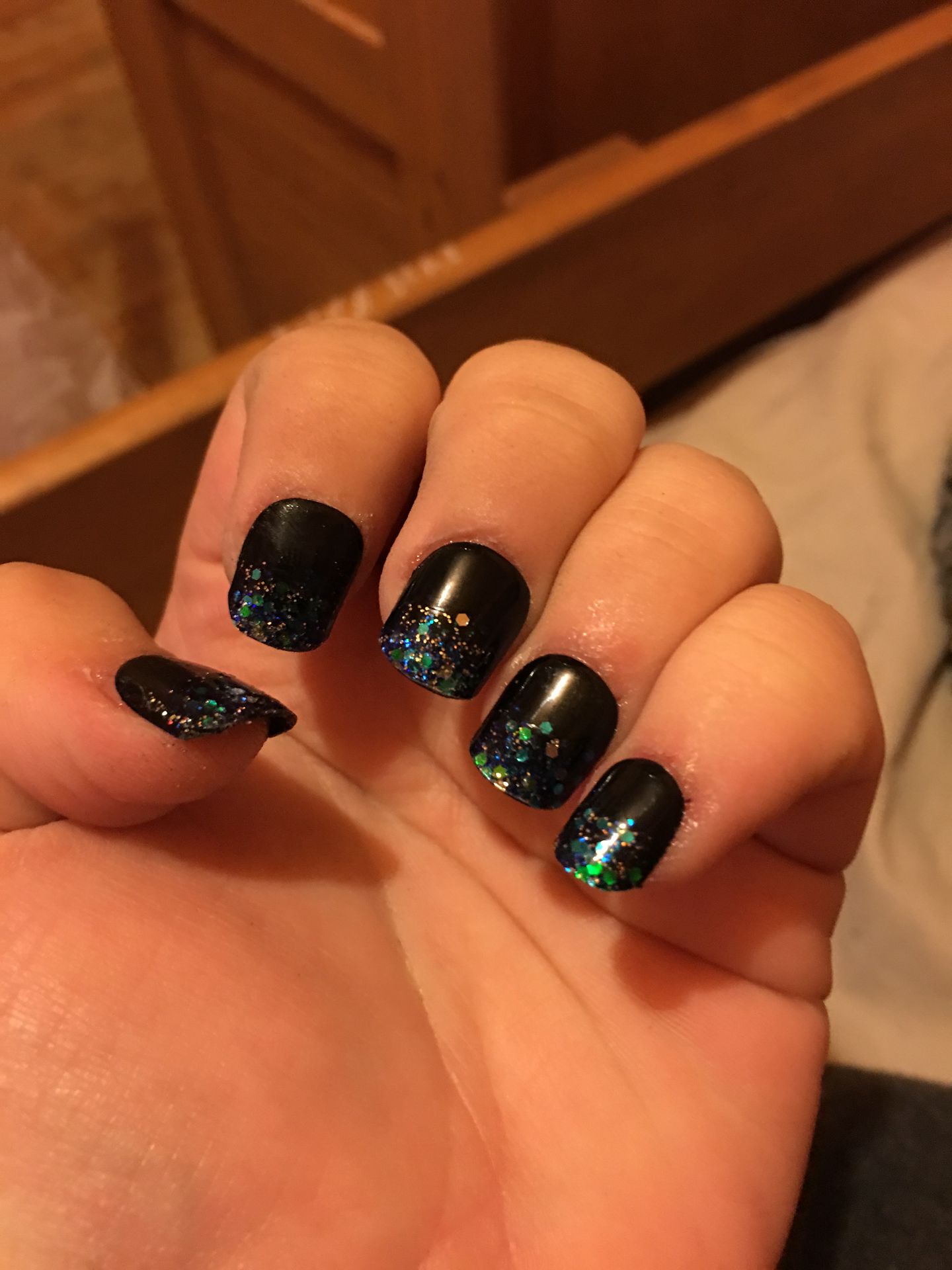 And I also added this clear coat with gold glitter in it (dunno if you can see it but yeah)