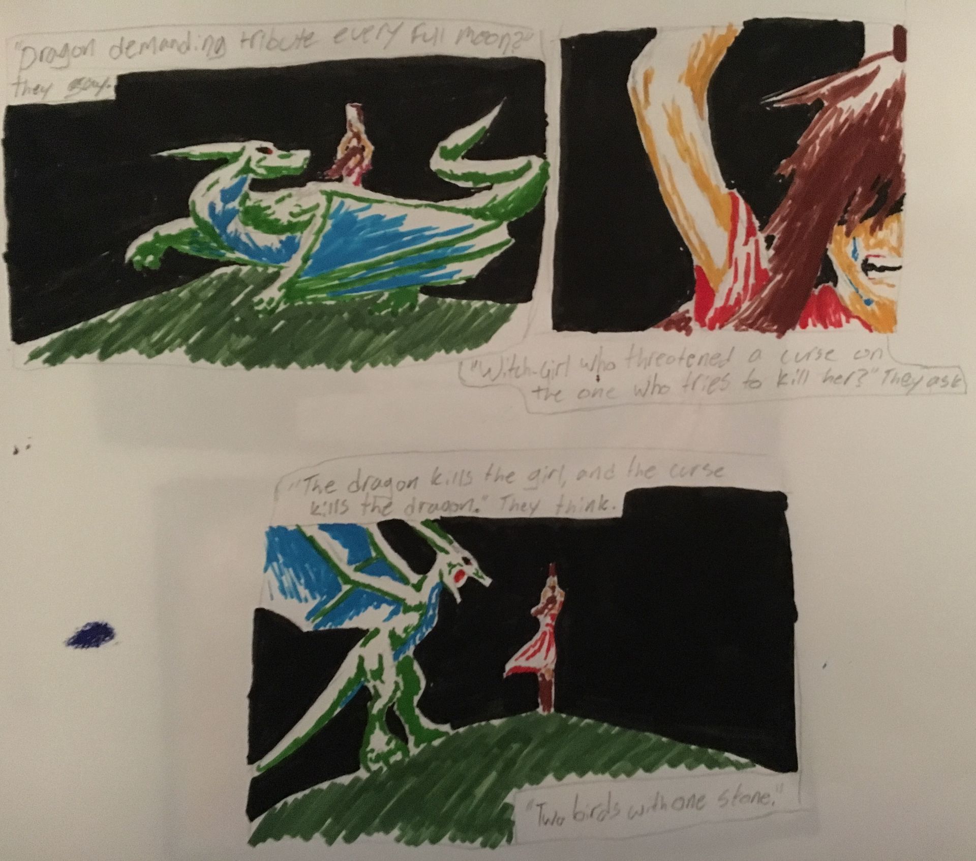 3 - "The dragon kills the girl, and the curse kills the dragon." They think. "Two birds with one stone."