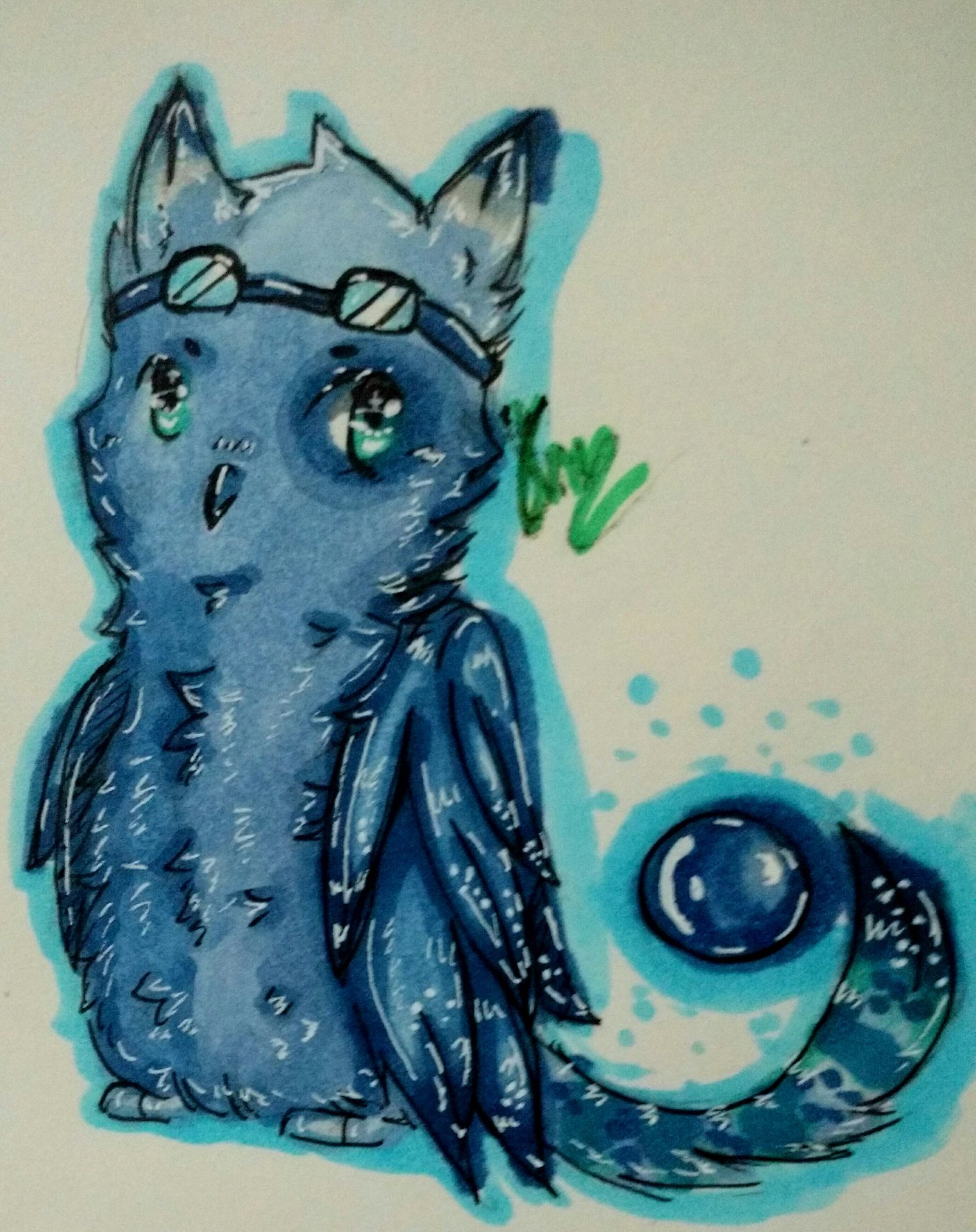 So you know that Owl species I made up? Well I decided to use my chameleon markers on him and omg I love it!! I just recently got some new white gel pens so it looks much brighter. Watcha think emndem02?