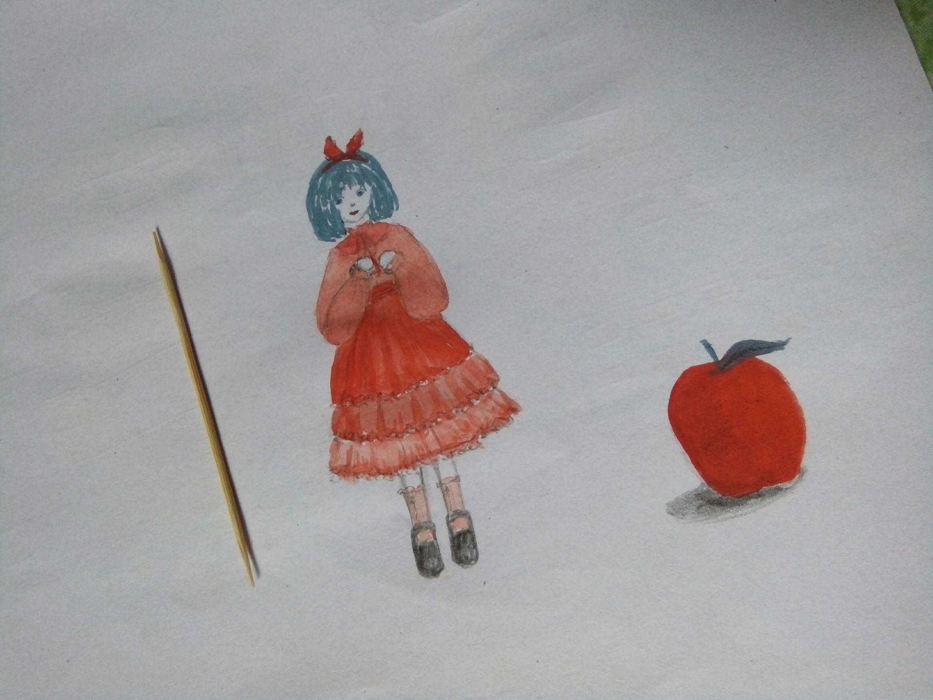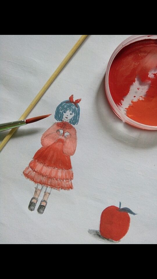 *xài đúng một cây cọ trên + 3 màu (đỏ, cam, xanh) à viết chì nữa :>>