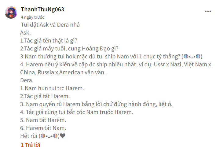Tui thấy hay á, vì tui chuyên đẩy thuyền đó trừ Vietnam x China kaka