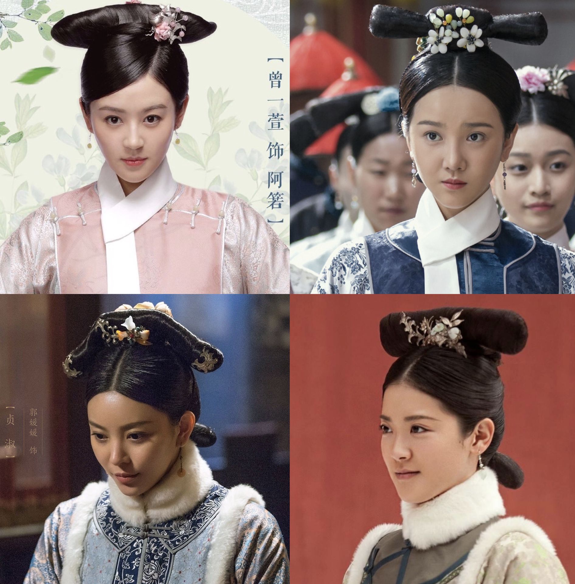 [1] Kỳ đầu: Gọi chung các kiểu tóc thời Thanh, chính là phần tóc giả phía trên đầu dùng để cài trang sức. Gồm lưỡng bả đầu, giá tử đầu, đoàn đầu,... vân vân vũ vũ, nhưng kỳ đầu của cung nữ sẽ là lưỡng bả đầu nhỏ gọn đơn giản ít trang sức, như dưới đây.