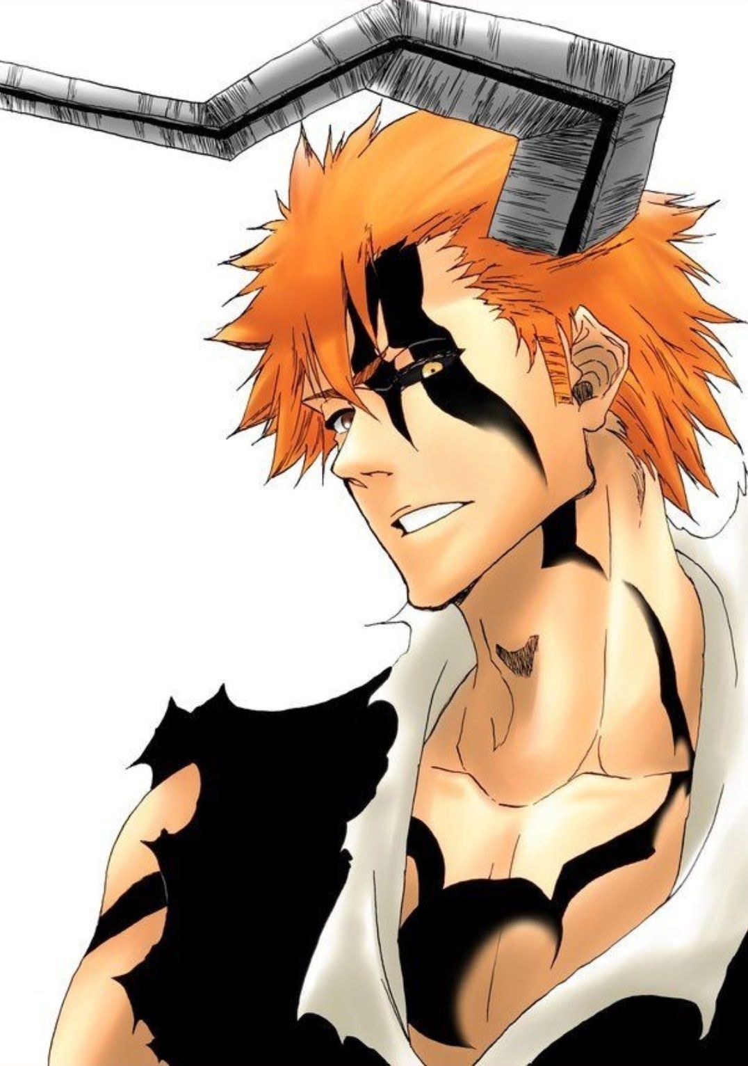 Khuôn mặt Ichigo có chút thay đổi về chiếc sừng Hollow với đôi mắt.