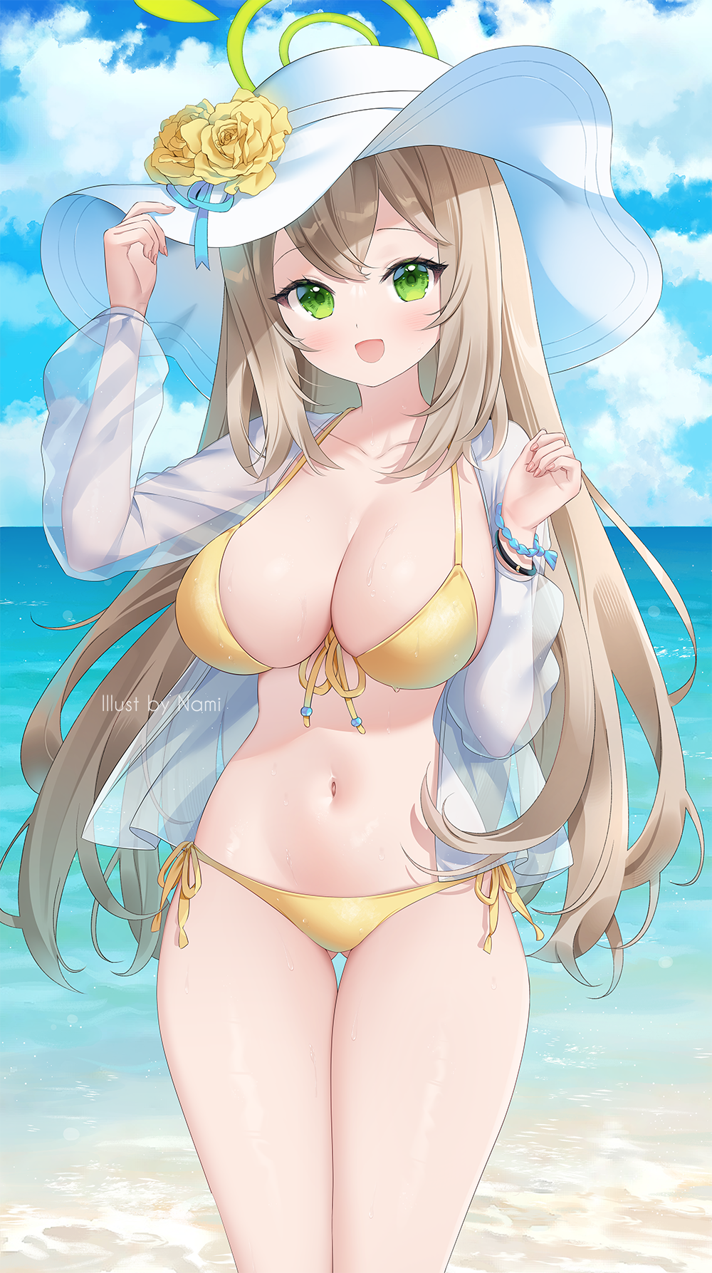 Yurika không thể chờ đợi để tận hưởng thời gian thư giãn và vui chơi trên bãi biển. Cô đi tới bờ biển, cảm nhận ánh nắng ấm áp và tiếng sóng biển êm ái.