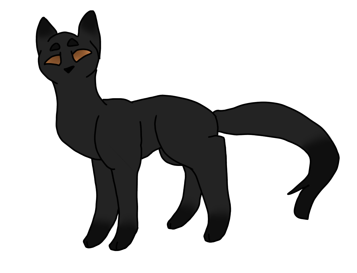 Looks: An almost black tom, with a grey chest and underbelly. He has anber eyes.