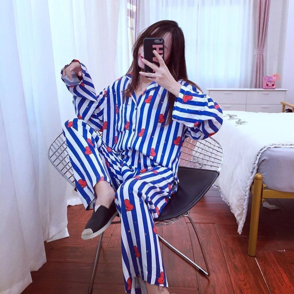 Sau một hồi ngồi chờ, cuối cùng cô cũng bước ra khỏi nhà tắm trước sự ngỡ ngàng của anh. Trên người cô là một bộ pijama vô cùng dễ thương. Màu sắc hài hoà. Màu xanh kẻ sọc trên nền trắng. Kèm đó là thêm một sinh vật hình thù vô cùng cute với cái mái đầu hình trái tim đỏ chót. [Rùa: Bé này chắc quen thuộc với những bạn là ARMY lắm! Là Tata nhà tớ đó các cậu! :)))]