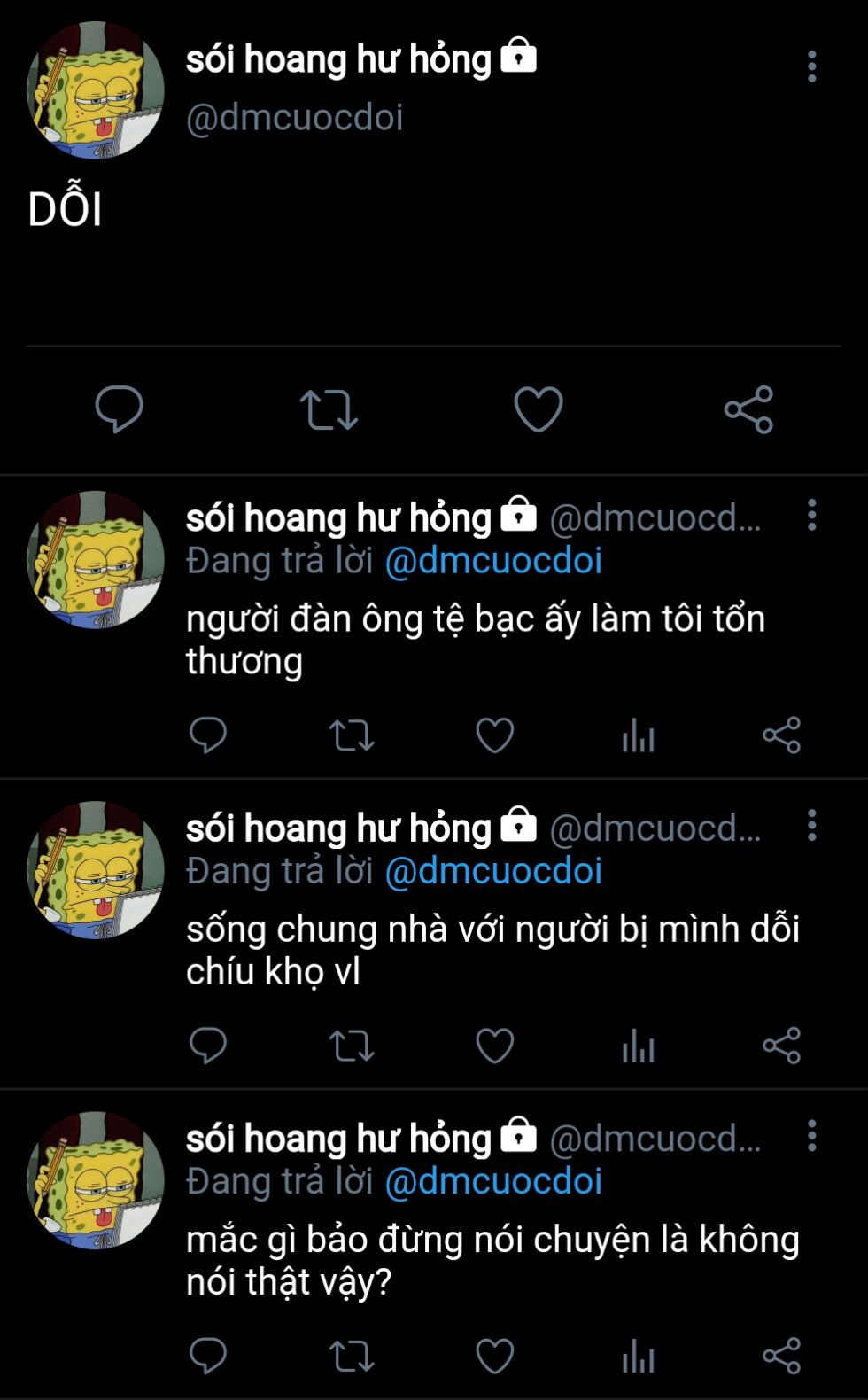 "là mày tự nhận định mà. có bao giờ anh nhận sóc là con anh đâu."
