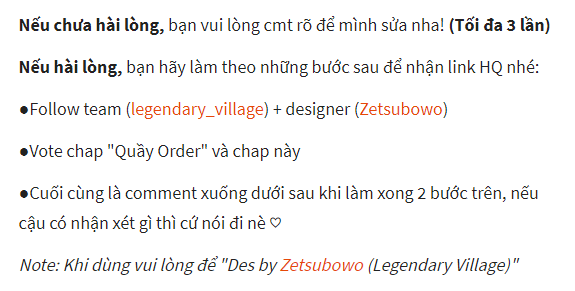 Khi cậu đăng ở nơi khác thì ghi: @Zetsubowo - @legendary_village | Wattpad nhé.