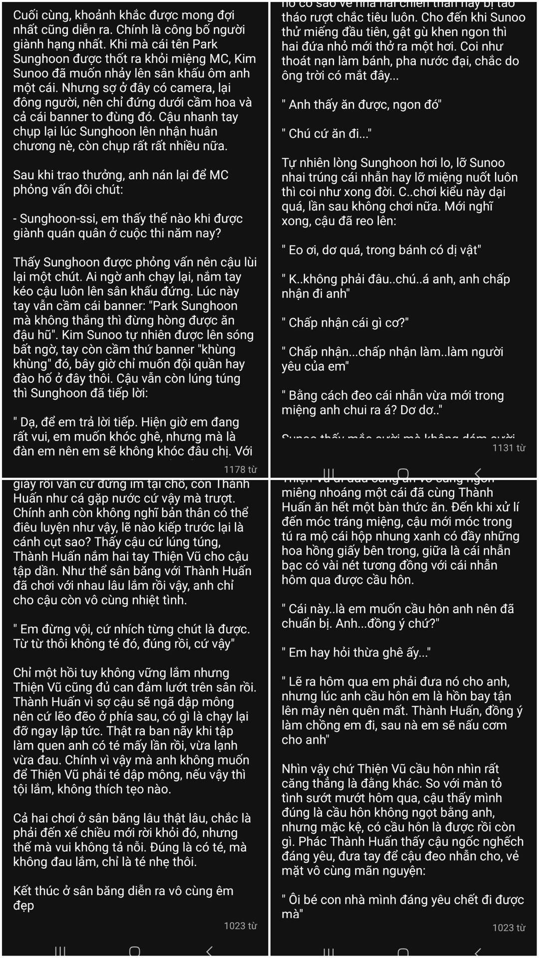 Tâm sự mỏng xíu là cái fic này tui ưng dã man, kiểu nó nhẹ nhàng tình cảm, không cần có nhiều drama nhưng lại bị đáng yêu. Lẽ ra có vài đoạn nữa nhưng thấy dài quá nên dừng lại ở 61 chap. View và vote của em nó cũng quá là ổn đi chứ, rất mê ạ.