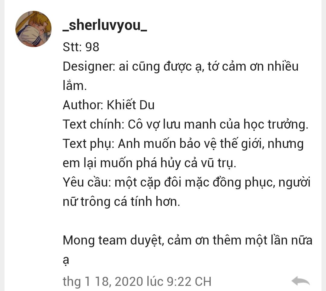 -Follow Team,Cmt "Nhận" và ib cho Designer để nhận link ảnh nếu cậu đã hài lòng.