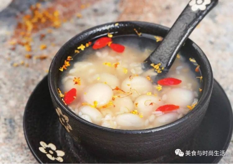 Món này khá giống với bánh trôi của Việt Nam mình nhưng có thêm cả cơm rượu với hoa gì ấy.