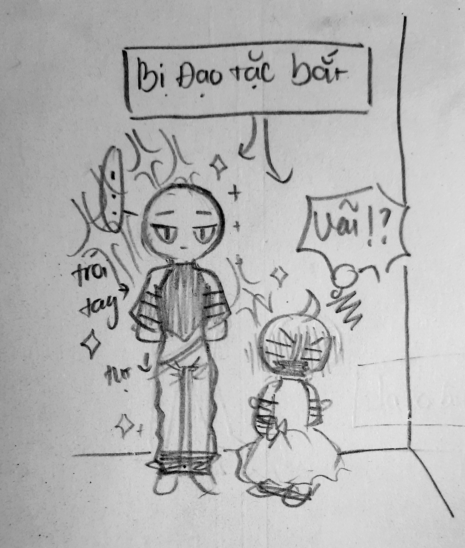 Spoil: do lắm mồm la hét nên bị dán mõm lại. Trong khi ai kia vẫn đứng yên như khúc gỗ không nhúc nhích mặc kệ sự đời.