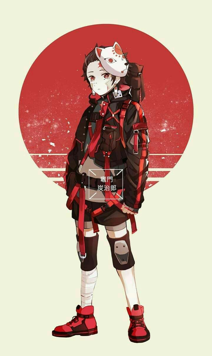 Chàng trai ấy đứng ở đằng xa, anh ấy có mái tóc đỏ thẫm, cậu ấy đeo một đôi hoa tai hanafuda, một chiếc mặt nạ cáo có hoạ tiết mặt trời bên trái, mặc một chiếc áo khoác đỏ cùng một vài chiếc đai áo, đeo một chiếc hộp gỗ sau lưng, phía dưới là chiếc quần ngắn, những ống thuốc độc từ hoa tử đằng luôn gài trong hai mảnh vải được buộc ở đầu gối và sau cùng là đôi giày đỏ.