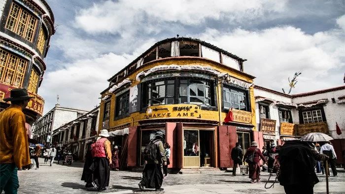 Nhà hàng Makye Ame bao trọn một vòng cung góc đông nam, nhuộm vàng cả Lhasa trong nắng chiều héo hắt. Ngồi trên tầng thượng có thể phóng mắt tới cuối đường Bakuo tấp nập kẻ lại người qua. Tri Quân cuộn tròn trên đùi anh Quốc, thủng thẳng rót từng hớp trà bơ sóng sánh xuống vòm họng đang nguội lạnh rã rời. Vị mặn mòi của muối hồng nằm sâu dưới chân Hy Mã Lạp Sơn như rắc thêm tình cho lớp bơ li ngưu thêm mềm tan béo ngậy. Tới hớp thứ ba, vị chát dịu của trà Phổ Nhĩ mới vói ra đầu lưỡi rồi mọc tỏa um tùm khắp khoang miệng, kẽ răng.