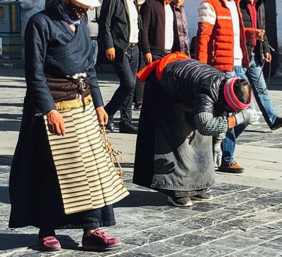 (1) Tam bộ (đi ba bước) để ngũ thể (chân, tay, ngực, trán...) một lần nhập địa (chạm xuống đất lạy một lạy) là nghi thức vái lạy của riêng người Tạng từ ngàn xưa. Họ quan niệm phải lạy đủ mười vạn cái trong đời mới làm tròn bổn phận với tín ngưỡng mình thờ phụng.