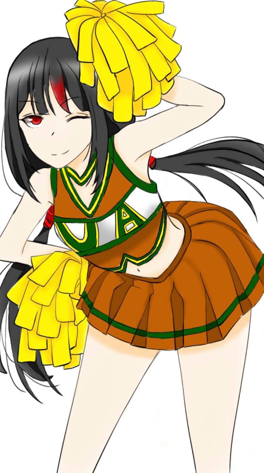 Một lúc sau, Cô đang đứng dưới sân cùng với các bạn nữ của lớp A. Mỗi người đều đang mặc một bộ đồ cổ vũ cắt xẻ quá lố. Kaminari và Mineta thì đang hạnh phúc vì đã lừa thành công cô bạn Momo.