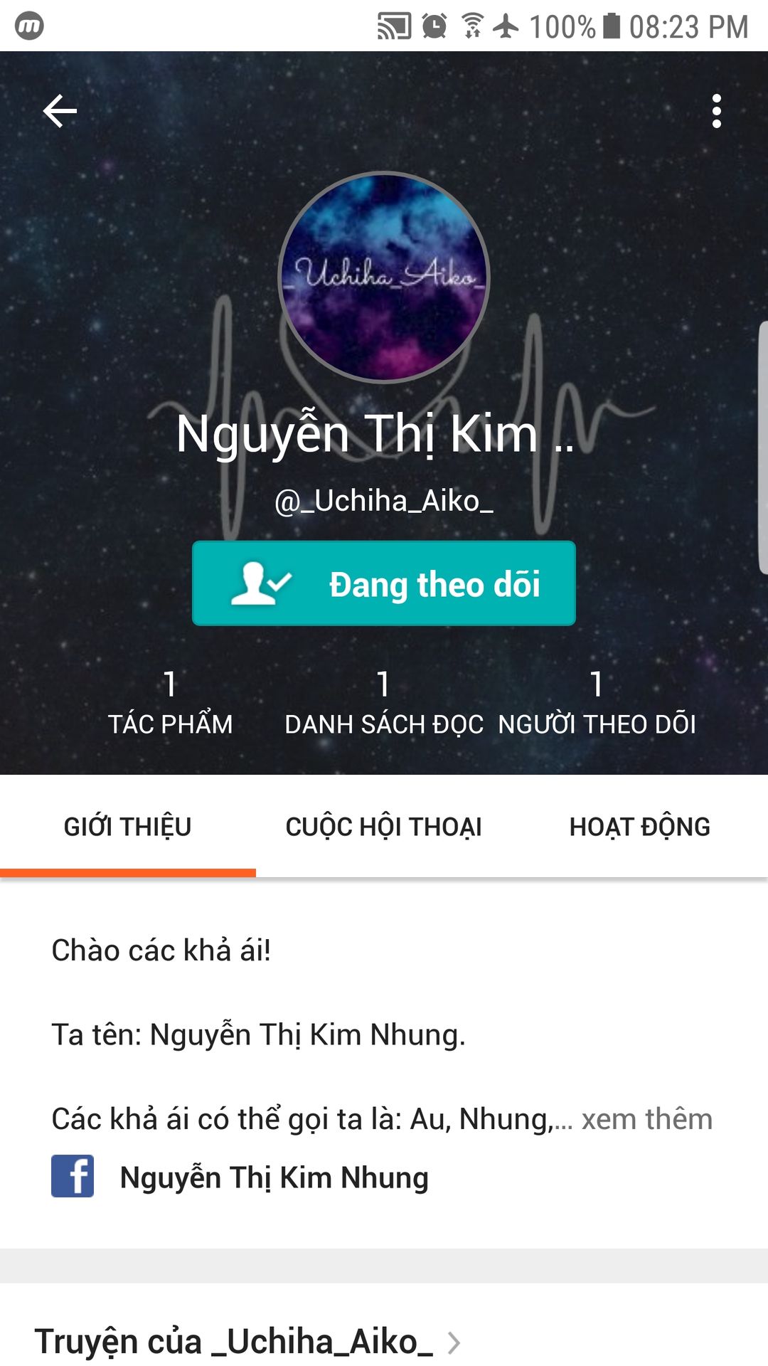 Nàng ấy dù mới tham gia Wattpad mấy ngày, mới chỉ viết một bộ truyền đồng nhân(Mới 2 chương), Ta cảm thấy truyện cũng hay, cách viết cũng chuẩn.