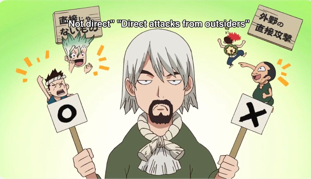"Huh, I gotta say, he's doing ten billion percent better than I was expecting." Senku admitted