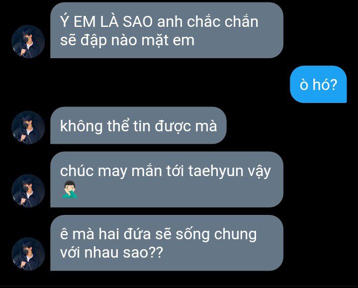 Taehyun mất một lúc để trả lời, từ từ ngồi xuống phần liền kề của chiếc ghế dài hình chữ L.