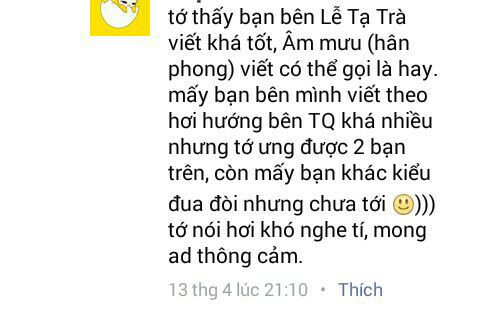 Có một bạn hỏi tôi fic của tôi được nhắc tới trên fanpage này tôi có biết không? Tôi đã nói dối rằng tôi không biết.