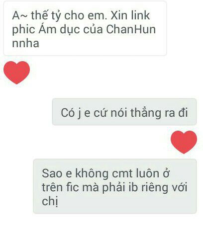 Sau đó tôi đã nghĩ người ta nói tôi đua đòi nhưng không tới, nhưng tôi không phải đua đòi. Tôi viết vì đam mê, vì tình yêu của mình dành cho couple mà tôi ship. Nếu tôi đua đòi, tại sao tôi không chọn HunHan hay ChanBaek mà lại là ChanHun? Bởi vì có người đã từng nói với tôi fic này nếu là couple khác thì sẽ có nhiều lượt view hơn.