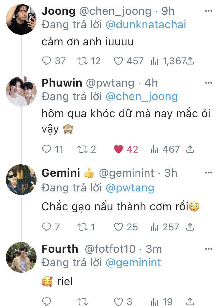 Sau khi tới địa chỉ mà Phuwin gửi, Dunk lập tức đỗ xe và đi tìm tới bờ sông, đúng như Phuwin nói Joong đang ngồi ở đó hắn nhanh chóng chạy đến chỗ anh.
