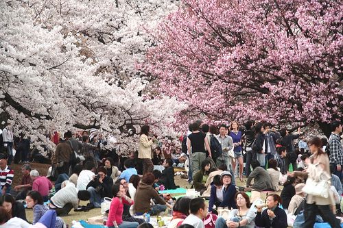 Trước mặt họ bây giờ là công viên Ueon với những đoá hoa đào nở rộ rất là đẹp.Mỗi tội là đông người quá,cả một biển người thì dễ lạc như chơi