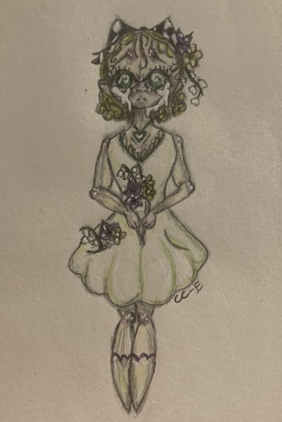 To show the toxic theme, I made sure to make her tears and 'sad' expression over the top and hopefully they come off as unnatural, since they're meant to show how manipulative she is! Additionally, the fliers she's holding, which also help with the catch, all have negative meanings in flower language: