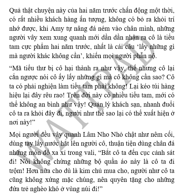 Lâm Nho Nhỏ thì vội vàng đánh và mắng cô, vừa bỏ tay cô ra, rống lớn với bên này: "Đây là tôi dùng tiền của mình mua, ai dám vu oan tôi là ăn trộm!"