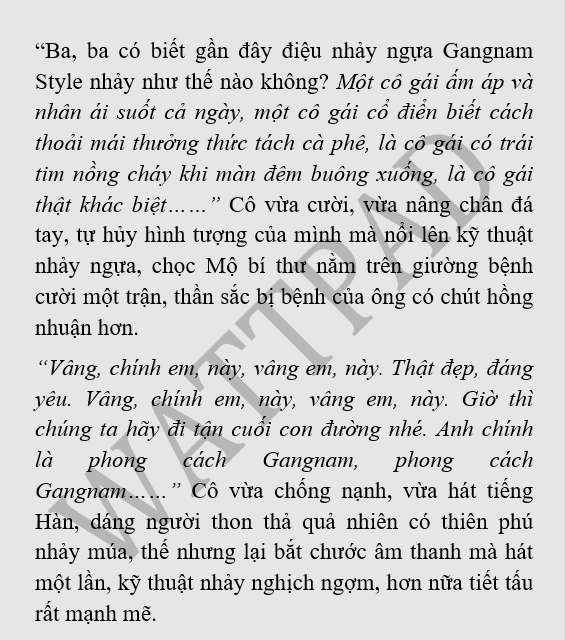 "Hây, hây, ehhhh ~, sexy lady, ộp, ộp, ộp, ộp pa Gangnam Style......" Cô lấy tờ báo làm micro, cánh tay phải dang ra nghênh đón mọi người vỗ tay, say mê nhắm lại hai mắt.