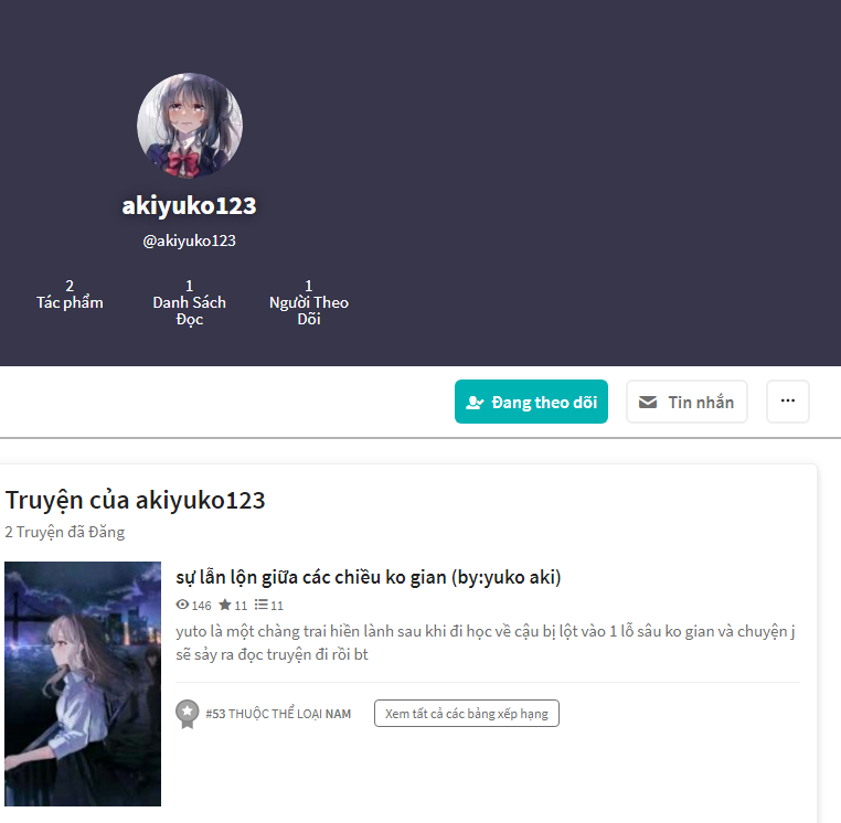 Đây là kết quả của Yuko nhưng mà lên 146 lượt xem cũng ghê thiệt tuy là viết hơi ngắn vs lại tui thấy phiên ngoại nhiều hơn truyện, mik coi hoài ko hiểu tại sao chỉ có 1 người theo dõi mà truyện lại 146 lượt xem cơ chứ thật đúng là khó hiểu, chắc vì ít người biết thì phải vs lại truyện của Yuko aki mới ra gần đây thui.