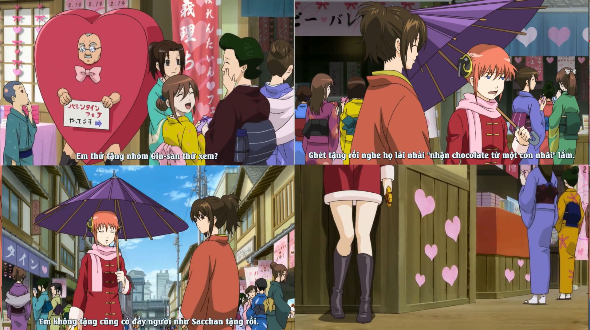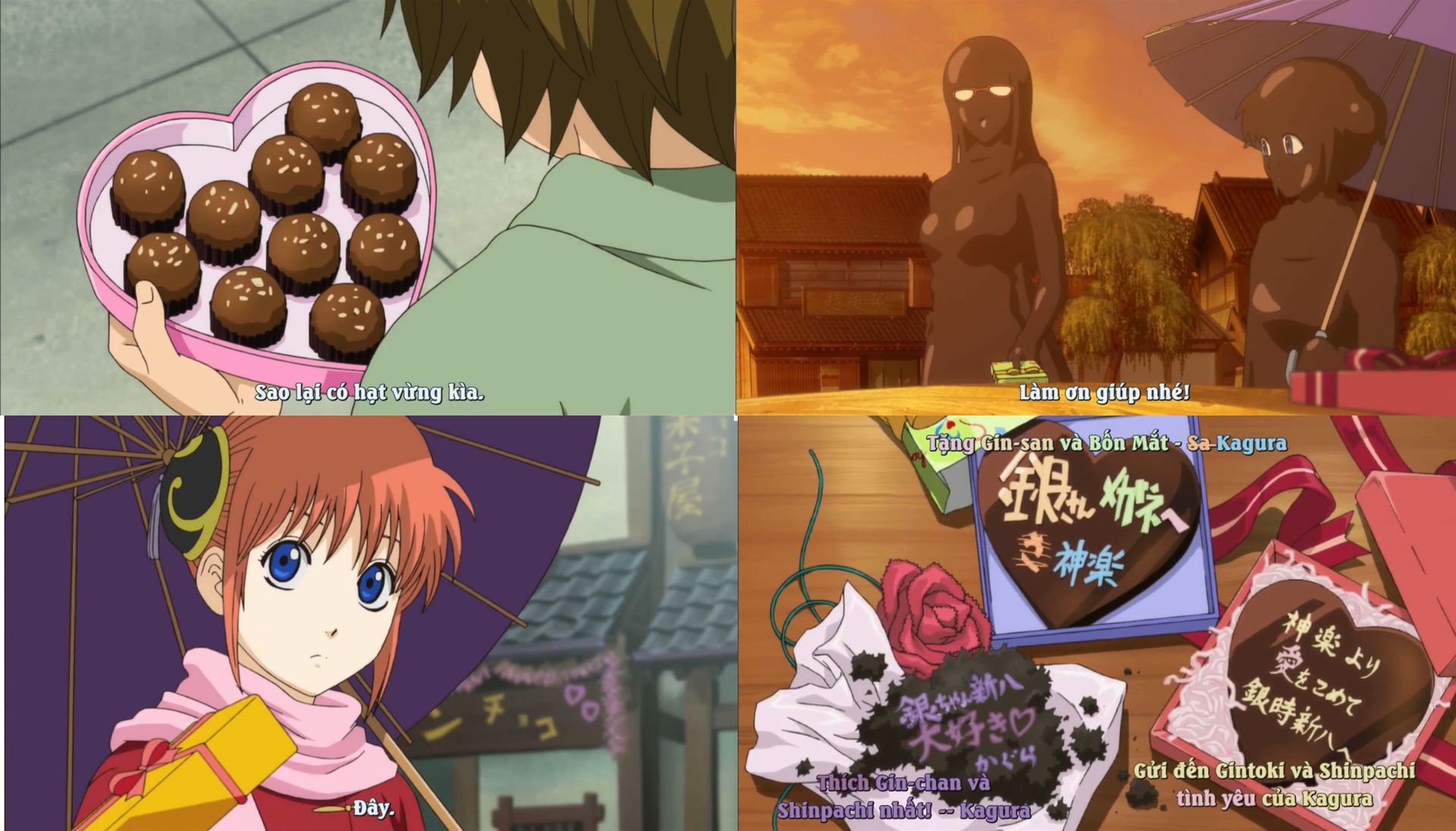 Nhưng mà Sa-chan chỉ tặng cho anh Gin chứ thèm đâu mà tặng cho Shinpachi. Hóa ra Kagura chỉ để ý mỗi việc tặng quà cho Gin-chan nhất. Lại còn tự nói mình là con nít nữa kìa. Chắc là Kagura không muốn mọi người nghĩ đơn thuần đây chỉ là socola của một đứa nhóc, nó còn bao gồm là tấm lòng và tình cảm của một người con gái nữa.