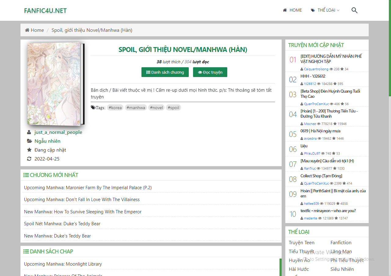 Vào buổi tối hè ngày 26/4, mình quyết định mượn điện thoại mẹ, gõ thử tên "spoil/ giới thiệu manhwa novel", lòng mong chờ rằng cái tên đó sẽ xuất hiện kèm chữ wattpad ở phía sau, nhưng không, thay vào đó mình lại thấy cái này.