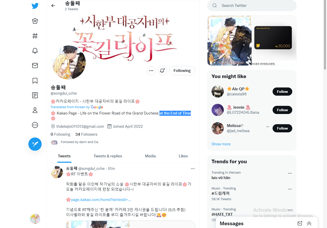 Tên đầy đủ của bộ này là "Life on the Flower Road of the Grand Duchess at the End of Time" nha mọi người, lần trước dịch thiếu á