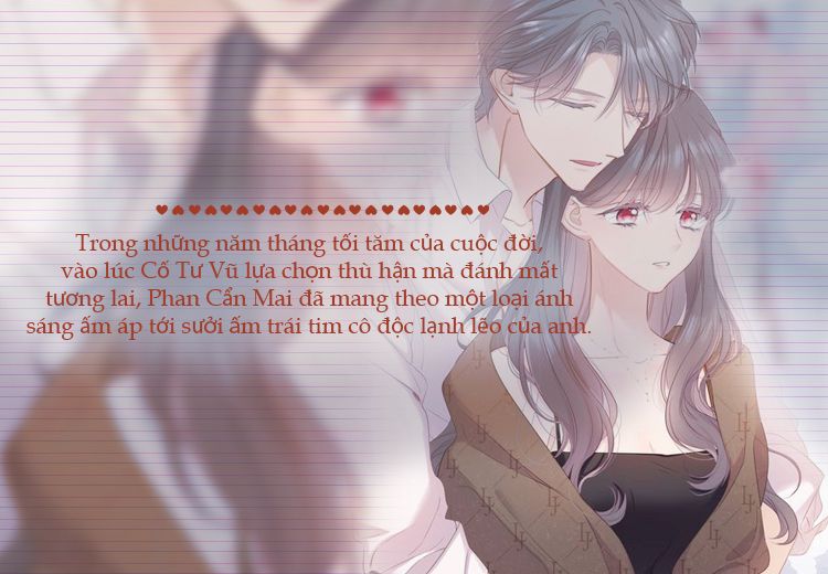 Trong những năm tháng tối tăm của cuộc đời, vào lúc Cố Tư Vũ lựa chọn thù hận mà đánh mất tương lai, Phan Cẩn Mai đã mang theo một loại ánh sáng ấm áp tới sưởi ấm trái tim cô độc lạnh lẽo của anh. Anh dùng toàn bộ sự may mắn của cuộc đời để gặp được cô, giống như đã tìm được một mảnh trái tim bị khiếm khuyết bấy lâu nay của mình.