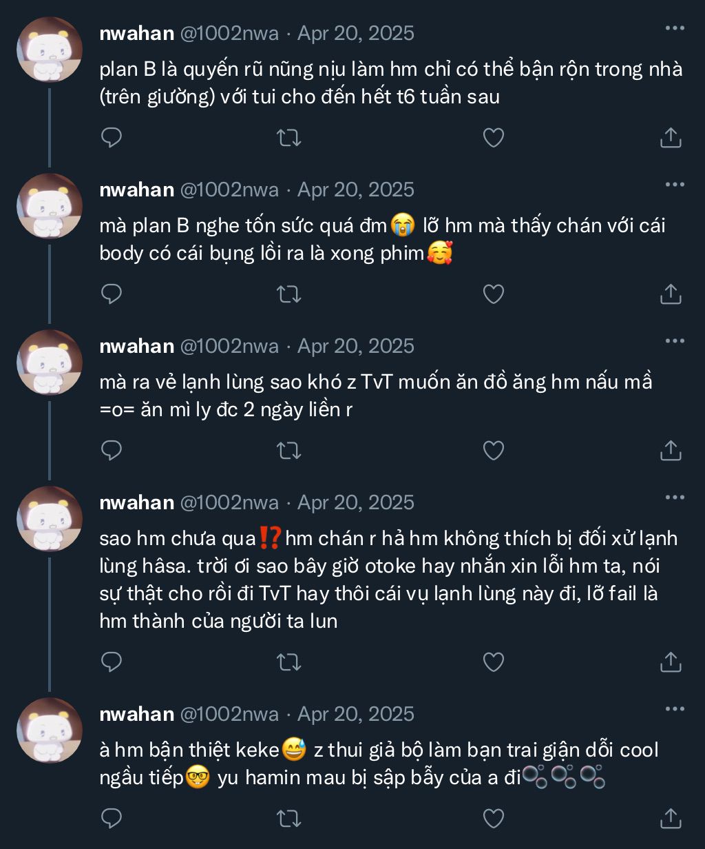 + tin nhắn đầu hamin gửi + tweet thứ hai cùng các replies của noah là lúc trưa 12h rưỡi