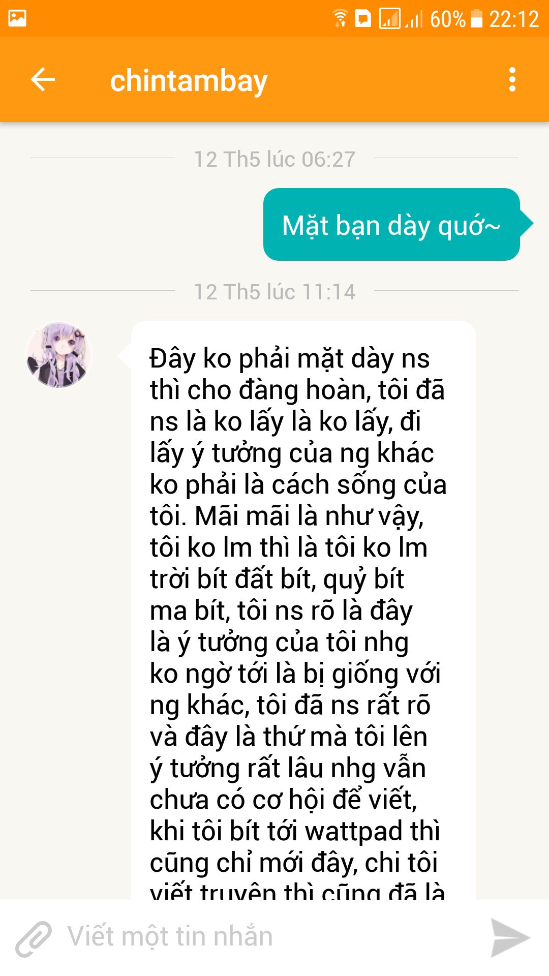 - Bạn ấy nói không rảnh tiếp truyện mấy người nói bạn ấy đạo nhái và sẽ đăng những truyện ấp ủ từ rất lâu lên. Ơ cái đm, thế thì mấy tin nhắn giải thích dài vai lone kia là để chùi đít à?
