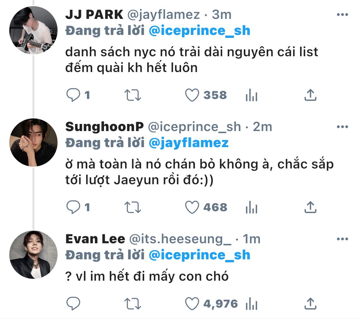Nhưng Jaeyun đang đi với ai thế kia? Hai người đi bar khuya như này với nhau à? Lại còn một nam một nữ? Em với cô ấy có mối quan hệ như nào vậy? Và hàng tá các câu hỏi không được hồi đáp cứ thế hiện lên quanh quẩn trong đầu Heeseung....