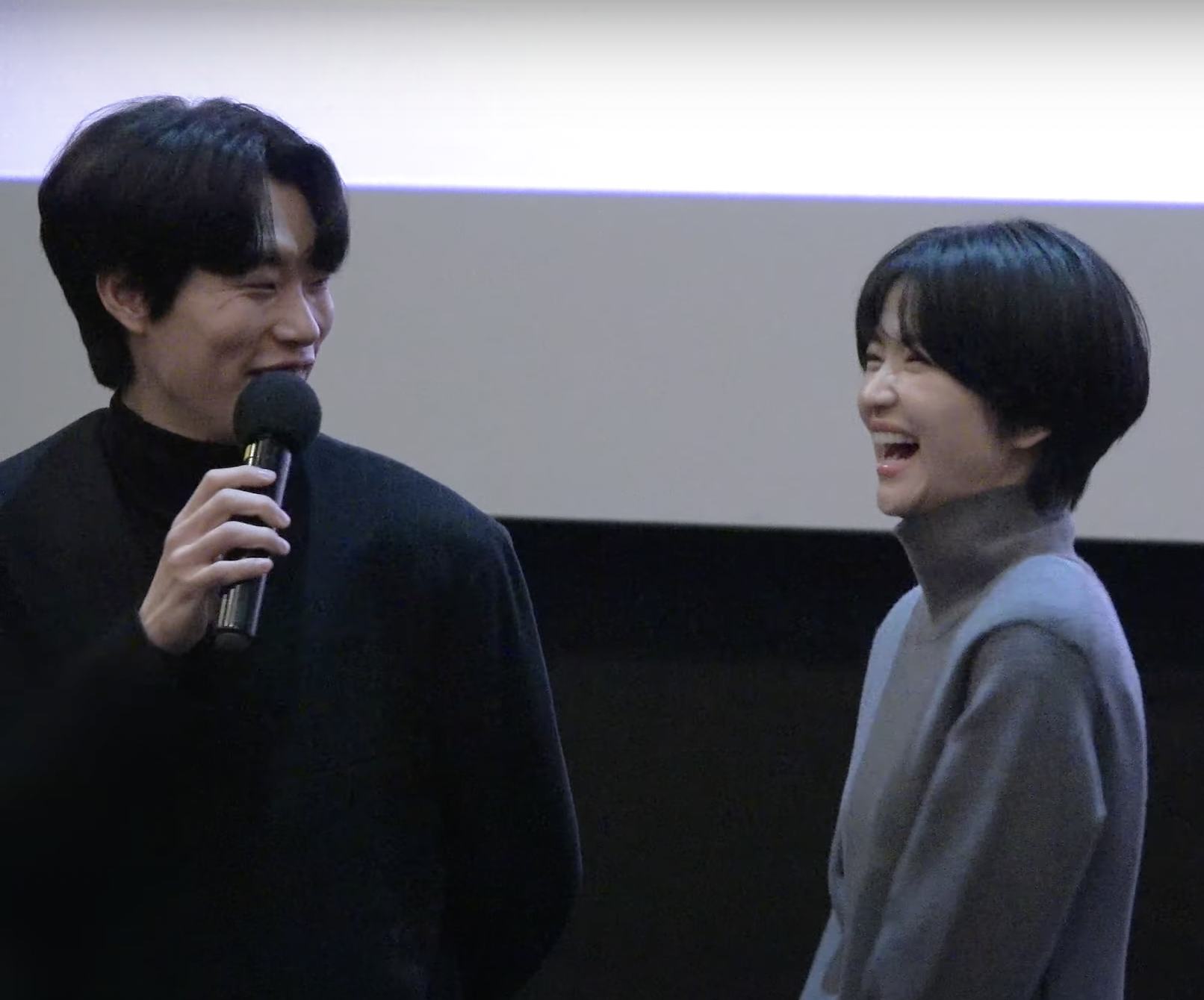 Trông thấy vẻ chờ đợi của Junyeol, Taeri phì cười. Cô quay sang choàng vai người anh của mình một cách tinh nghịch và đùa.