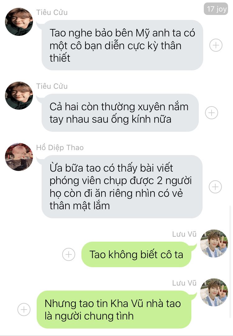 Châu Kha Vũ che đi môi nhỏ đang thốt ra lời ấm ức, anh nói "Em không cần để ý đến con mắt mọi người xung quanh nghĩ gì, em hãy focus vào anh thôi, anh mới chính là bạn trai của em"