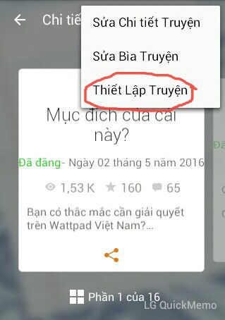 Bước 3 : Chọn "Thiết lập truyện"